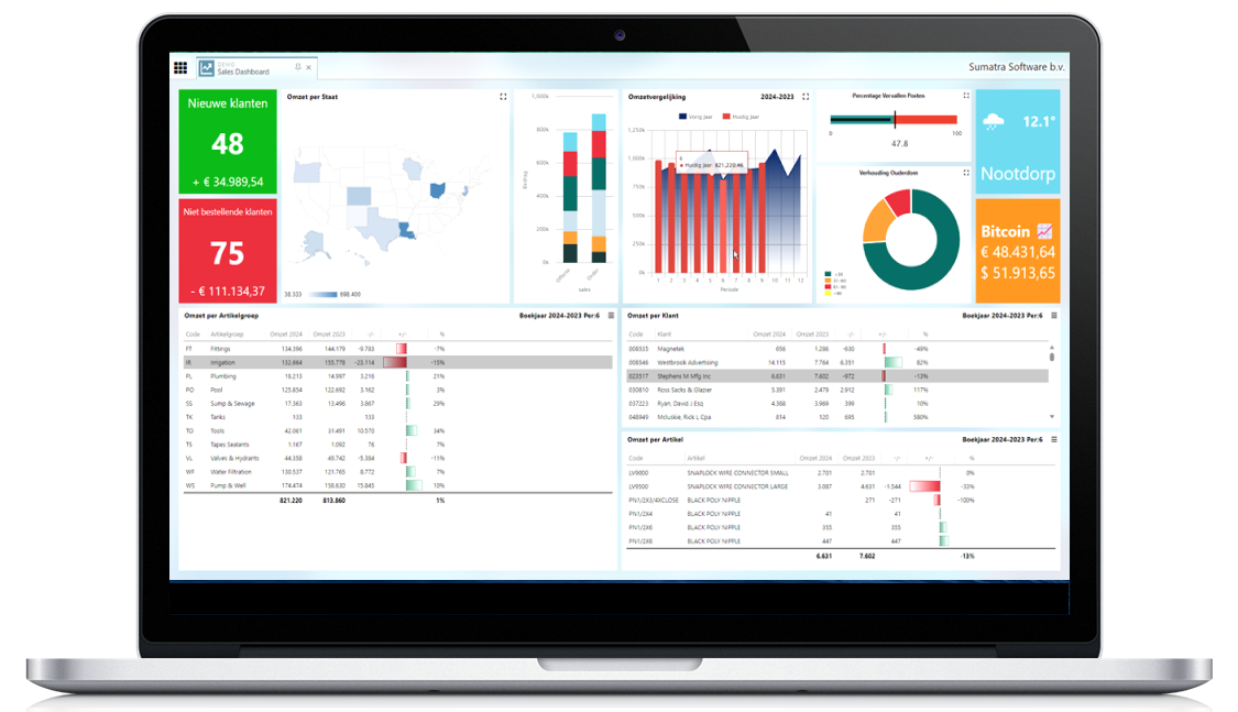 Waar standaard rapporten en Excel aan de oppervlakte blijven, gaat Sumatra Operational Intelligence juist de diepte in, op zoek naar verklarende details. Sumatra koppelt met Business Central, Dynamics NAV, Exact Globe+, Exact Synergy, Exact Online Premium, Exact Financials en KING ERP & more.